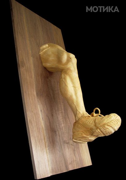 Всо случај со „Пливачот“, се додавва уште едно парче дрво за раката. Рокнак црта директно на дрвото, за директно да види што треба да се направи.