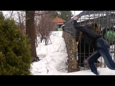 Мечката случајно ја заробиле во кафез во една руска пивара. Главниот актер во видеото е вработен во пиварата, кој очигледно цел ден дегустирал :).
