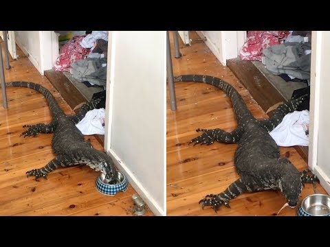 Овие гуштери се меѓу најголемите во светот и се во сродство со Комодскиот змеј. Иако овие рептили не се агресивни кон луѓето, доколку не ги испровоцираат, имало случаи на напад, бидејќи гуштерите имаат остри заби и канџи. Луис вели дека неговите деба биле храбри и со помош на метла полека го избркале гуштерот.