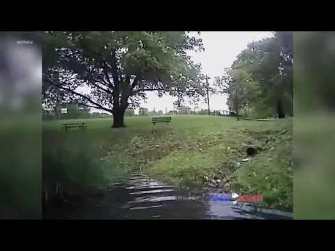 Полицаецот забележа нешто необично во езерцето во паркот и без размислување стапи во акција. Снимката е од камерата на телото на полицаецот.