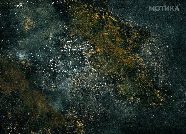Дно на чаша, вода, боја за храна, кокосово масло и млеко. Ѕвездите се од цимет, сол и сода.
