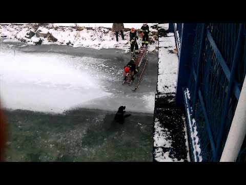 Ако вашето куче се заглави во заледена вода, секогаш се советува да не одите по него. Ова видео од Полска точно покажува зошто е најдобро спасувањето да им се препушти на експерти. Снимката направена во декември прикажува црн лабрадор кој се држи за мразот. Кутрото кученце случајно паднало во смрзнувачки студената вода. За среќа, набрзо било спасено благодарение на пожарникарите, коишто се сетиле на генијален начин како да го спасат кучето пред тоа да умре од студ. Еден храбар пожарникар спушти скала на мразот и со помош на стап со кука го зафати коланот на премрзнатото кутре.