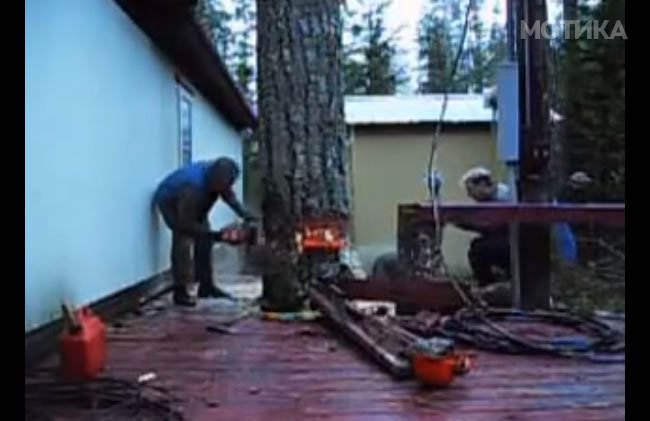 Милиметарска грешка во оваа работа може да ви ја смачка куќата. Импресивна е количината на самодоверба која ги натерала да се нафатат да го сечат ова дрво.