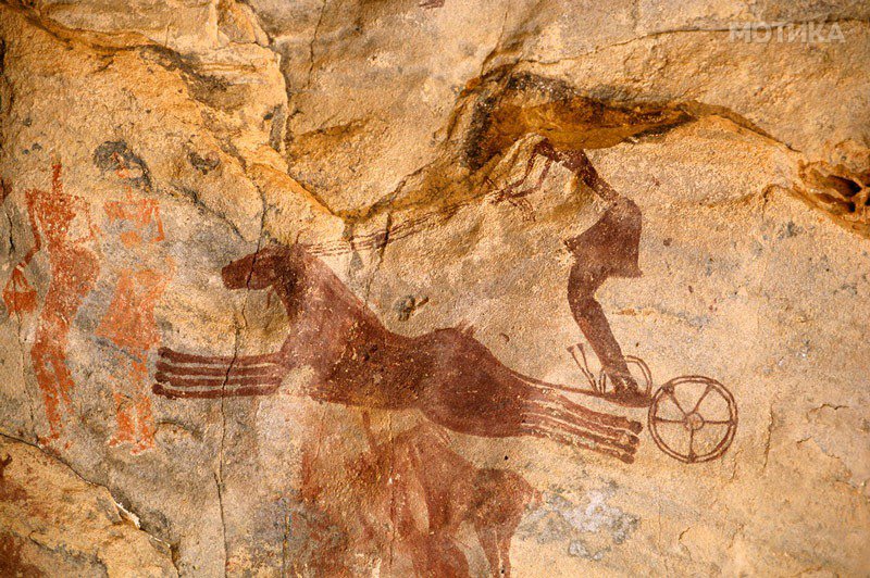 Најстарата уметност припаѓа на т.н. „Период на дива фауна“ (10 000 – 6 000 години пр. н.е.) кој се состои речиси целосно од издлабени цртежи на диви животни како нилски коњи, крокодили, слонови, жирафи, носорози, отсликувајќи го изобилството на живот во времето кога Сахара била зелено и плодно земјиште. Луѓето се прикажани како џуџиња во споредба со овие животни и често во рацете држат бумеранзи, стапови, секири и лакови и стрели.