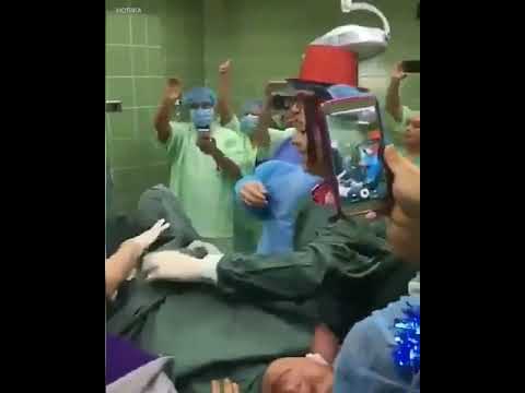 Се собрал персоналот од цела болница, сите снимаат со мобилните телефони и ѝ одбројуваат на мајката кога да почне да турка :).