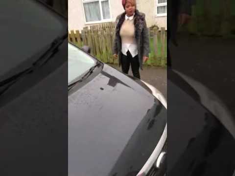 Пред комбето има бандера и не може напред, а назад има инаетлива жена која му вели да си викне полиција ако има проблем.