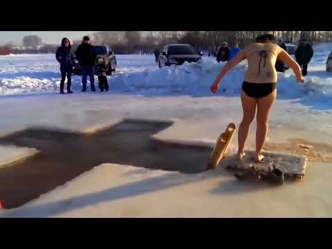 Мора да влезе во дупката во форма на крст во мразот и 3 пати да нурне во студената вода.