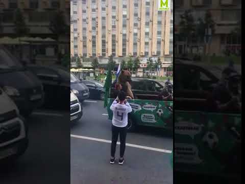 Со вистинска руска мечка во автомобил, која свири на труба.