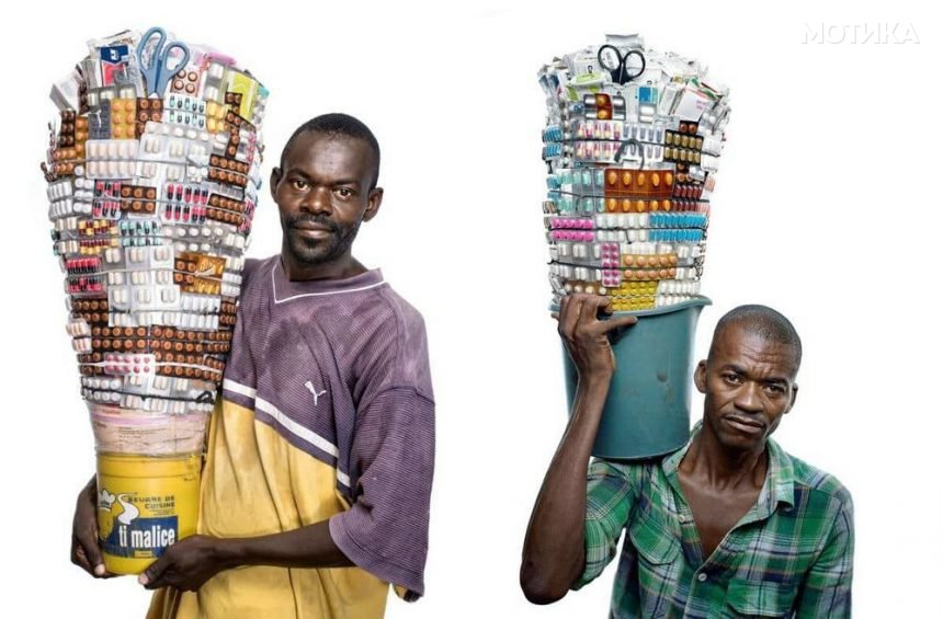 Всушност аптеките се многу ретки во Хаити и поради тоа уличните продавачи се главен извор за лекови. Како уличен продавач мора да направите Вашата аптека да изгледа привлечно, инаку никој не би купил од Вас. На пример тие го ставаат ампицилинот веднаш до туленол така што пакетот розови таблети ќе создаде контраст со пакетот сини апчиња. Продавачите редат стотици разнобојни апчиња во кула во кофа или леѓен и притоа внимавате на боите. Пар ножици, кои се користат за разделување на лековите стојат на врвот од кулата. Целата структура е прицврстена со гумени стегачи.