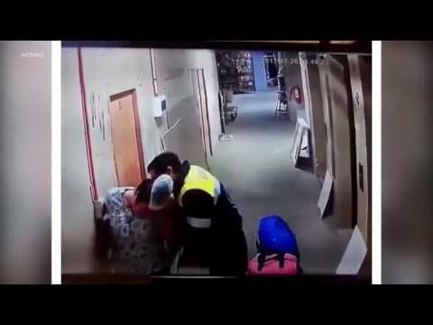 Снимката е од безбедносните камери во болница во Валпараисо, Чиле. После кратката расправија со влечење за коса, сестрата не се откажа од зборување, што го разгневи болничарот. Тој е суспендиран и уапсен.