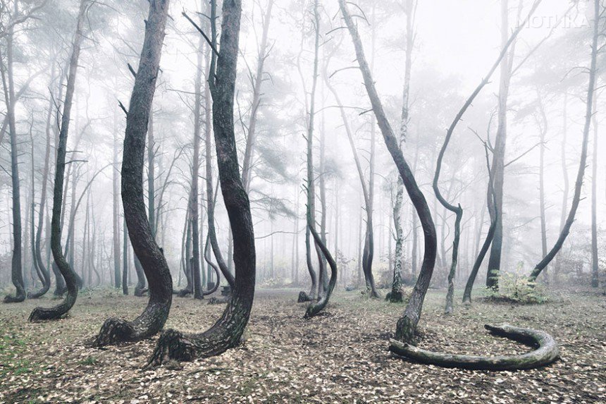 Сите дрвја веднаш над почнвата имаат чудно скршнување од 90 степени, за потоа пак да почнат да се извишуваат во грациозна закривеност. Нивниот чуден, но прекрасен изглед совршено е овековечен во фотографиите на Килиан Шонбергер.