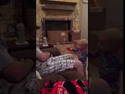 Симпатичната ќеркичка не му дозволува на таткото да ги користи нејзините тропалки