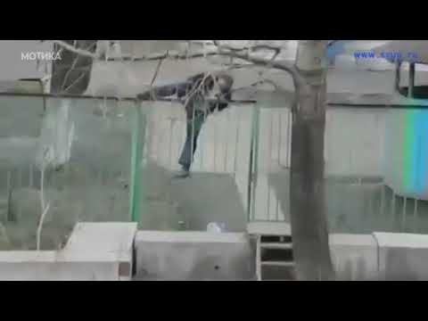 Човекот пробува сѐ и сешто, но никако не успева да се справи со високата ограда и незгодната гравитација.