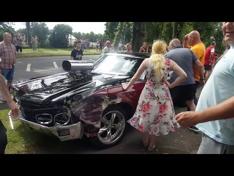 Сопственикот нa бесен и многу добро зачуван олд-тајмер, реши да се исчалами со горење гуми на шоуто