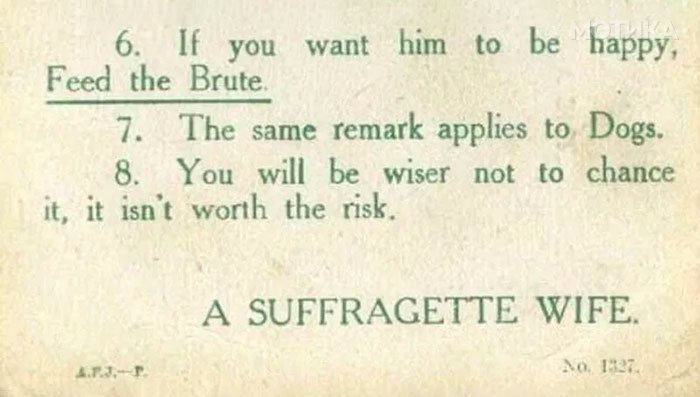 Неодамна, памфлет од 1918 година од Суфражетка, изложен во Музејот на Понтиприд во Велс, стана вирален, поради неговите „сурови“ совети за жените кои планираат да се мажат. Што мислите вие за нив?