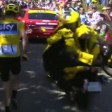 Откако му се случи незгода на Крис Фрум, носителот на жолтата маичка во 12-тата етапа на трката, тој реши да го батали велосипедот и да ја заврши трката со трчање....