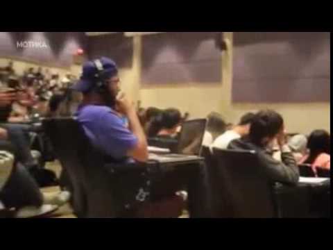 Наместо звукот да оди на слушалките, сите студенти и професорот слушнаа што гледа додека е на предавање.
