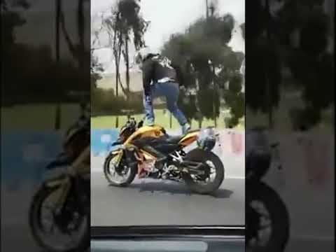 Моторџијата изведуваше опасен трик качен со нозете на моторо, но ветрот и тремата од снимањето му ги поматија плановите.