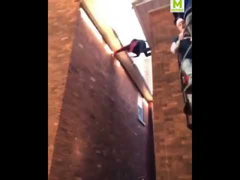 Фраерот се качува меѓу две згради, а цело училиште се собрало да го гледа.