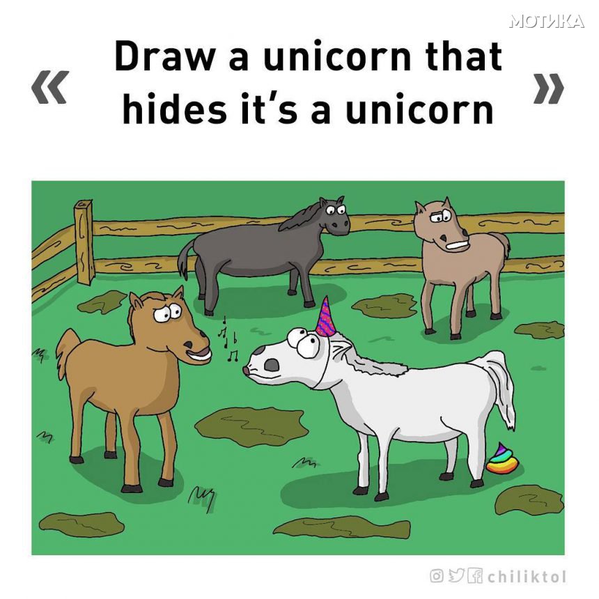 Нацртај еднорог кој крие дека е еднорог