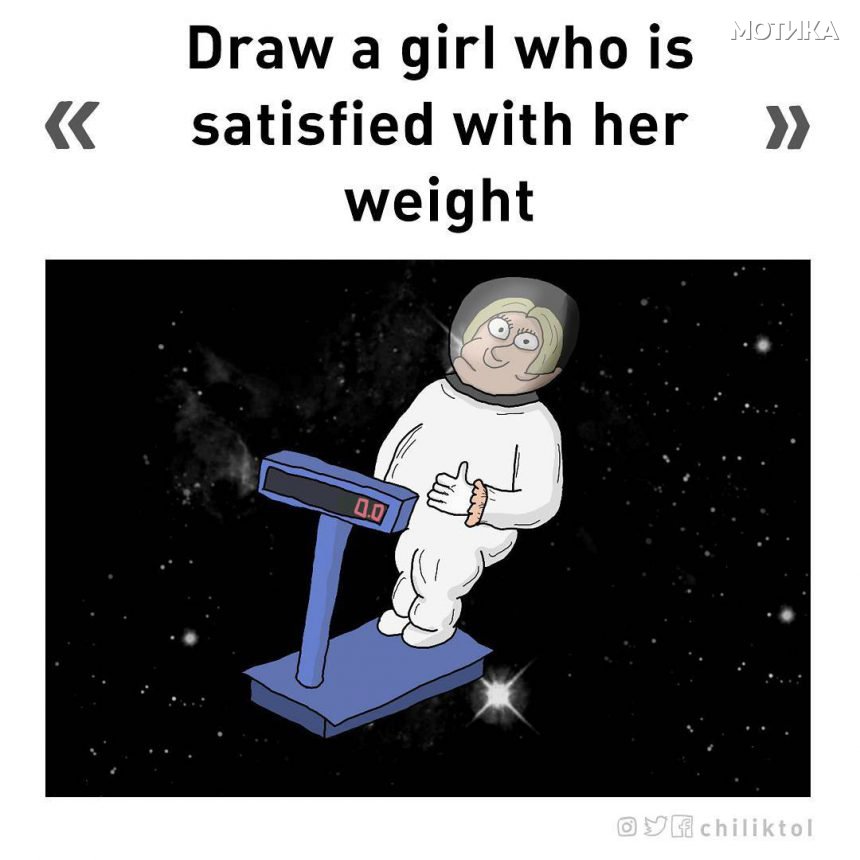 Нацртај девојка која е задоволна со нејзината тежина