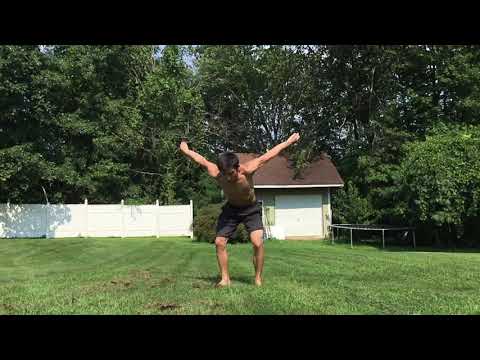Упорен дечко учи како да направи двојно салто наназад на трева