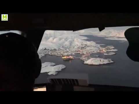 Вака изгледа слетување на аеродром во Гренланд од кабината на пилотот