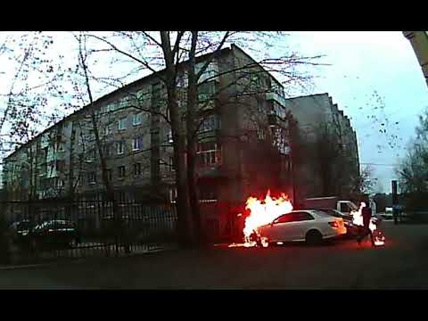 Но покрај Мерцедесот, се запали и палачот… Снимката е од безбедносна камера во рускиот град Перм.