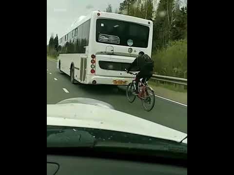 Техниката е чиста физика, а за да постигне толкава брзина велосипедистот само треба да се труди да остане позади автобусот. Струењата на воздухот го прават останатото. Но, што ќе се случи ако автобусот нагло закочи?