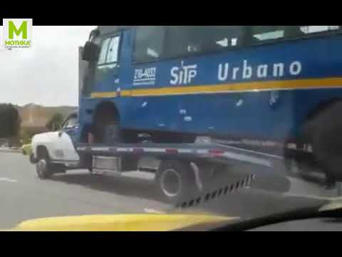 Чиста физика е ова, само треба да го најдеш тежиштето на автобусот и да внимаваш да не биде надвор од камионот на влечната служба :).