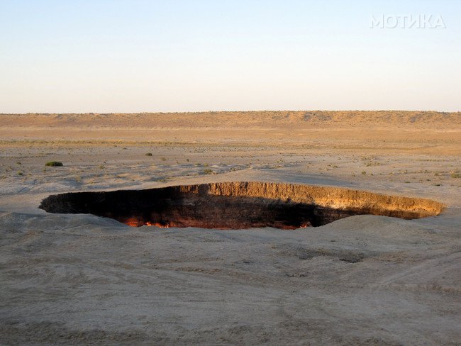„Вратата кон пеколот“, како што ја нарекуваат, се наоѓа среде пустината Каракум во Туркменистан, во близина на малото село Дервезе.