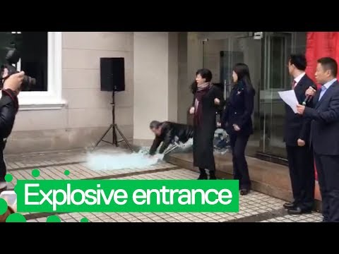 Се собравме сите тука на свеченото пуштање во употреба на новата, стаклена, влезна врата…