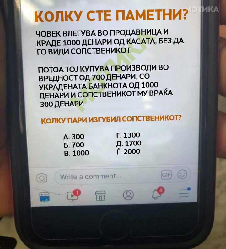 За да не ја расипеме дискусијата и забавата, точниот одговор е објавен само на Андроид апликацијата на Мотика.