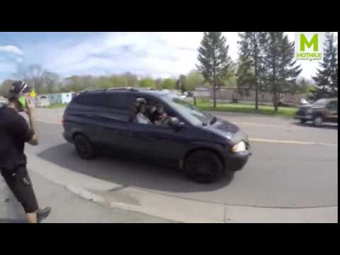 Залетан моторџија снима баба со џип која бавно излегува од паркингот