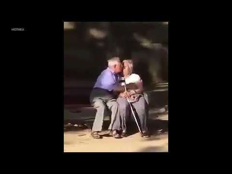 Заљубени дедо и баба на клупата во паркот
