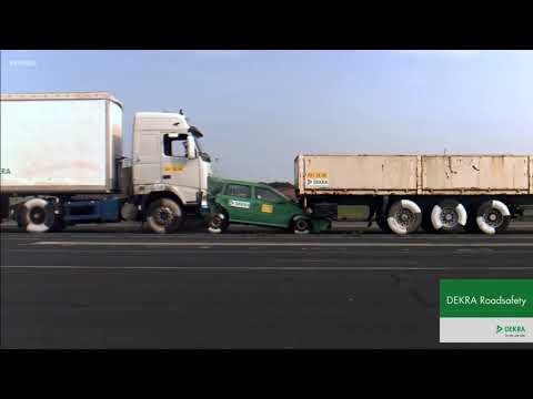 Се разбира, ова е само тест за да се покаже опасноста и нема жртви, но судејќи според последиците, во реални ситуации патниците на автомобилот би немале никаква шанса да преживеат. Вреди да се напомене дека брзината на движење на камионот е само 43 км/ч. Навистина страшна глетка!