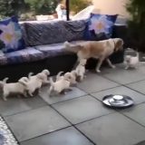 Мајката смисли интересна игра, во која таа исчезнува а кученцата ја бараат и таа некако магично се појавува зад...