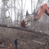 Орангутан се обидува да го спречи булдожерот со рацете за да не му го сруши дрвото. Животното се надева дека ќе ги спаси дрвјата од дрвосечачи за кои се верува...